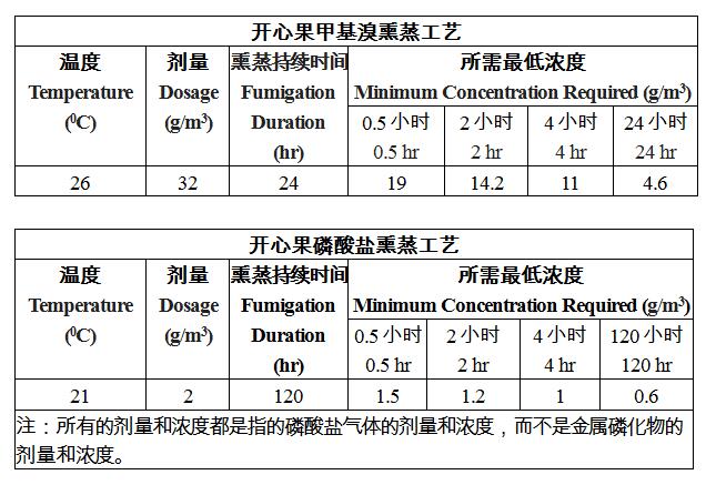 (三)土耳其輸華開心果應實施熏蒸處理,以殺滅中方關注的檢疫性有害生物,熏蒸處理方法見附表。