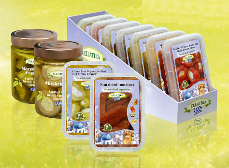 我們供應芝士夾心紅辣椒、芝士夾心青辣椒、芝士夾心蘑菇和番茄干等開胃菜,這些都是地中海一道風味小吃。