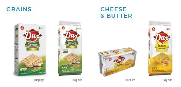 我們的蘇打餅有多種口味,原味、鹽味和奶酪等,袋裝和罐裝都有。