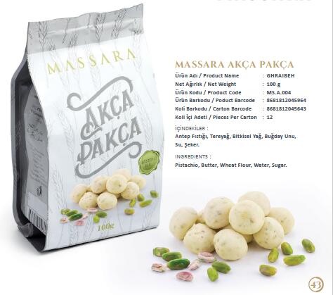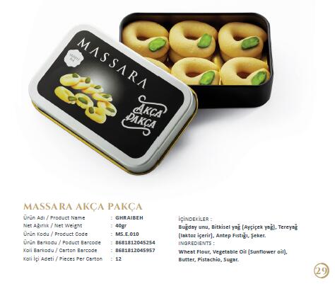 我們是土耳其一家食品工廠,主要生產各式的曲奇或者糕點。與其他曲奇不同的是,我們的曲奇加入開心果、椰棗、芝麻、核桃仁、椰絲等,形成不同口味,帶給人們不一樣風味的曲奇,在包裝上,我們也有適合送禮的禮盒也有袋裝。