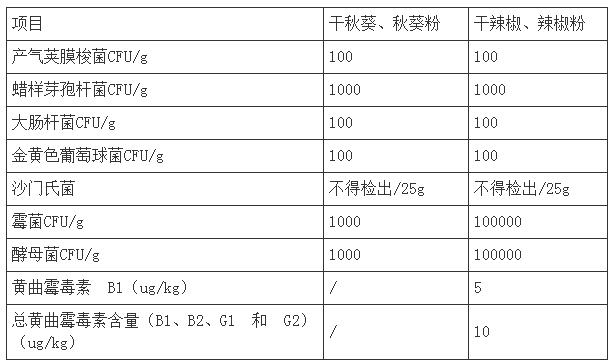 2023年3月24日,科特迪瓦標準局發(fā)布4726、4725號咨詢文件,擬制訂干辣椒、辣椒粉及干秋葵和秋葵粉標準。意見征集反饋期60天。主要內容:(1)適用范圍。適用于干辣椒、干辣椒粉、干秋葵和秋葵粉標準;(2)一般要求。無異物、具有特有的氣味、顏色和味道等;具體微生物等項目要求如下表所示;(3)包裝和標簽要求。制造商的名稱和地址、產(chǎn)品名稱、品種類型、凈重、生產(chǎn)日期、保質期、保存方法等。