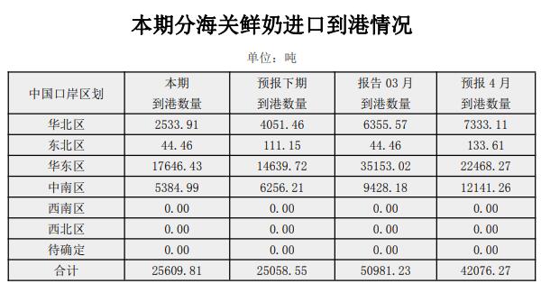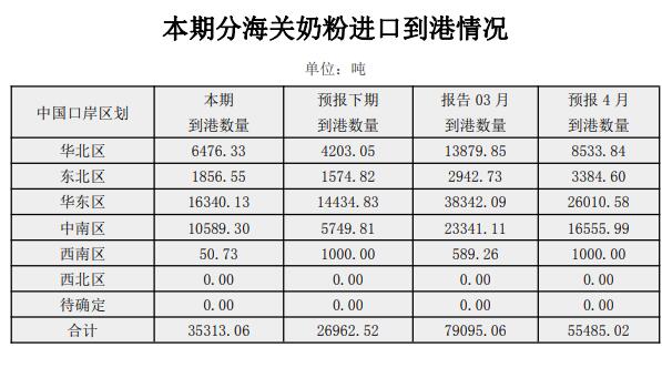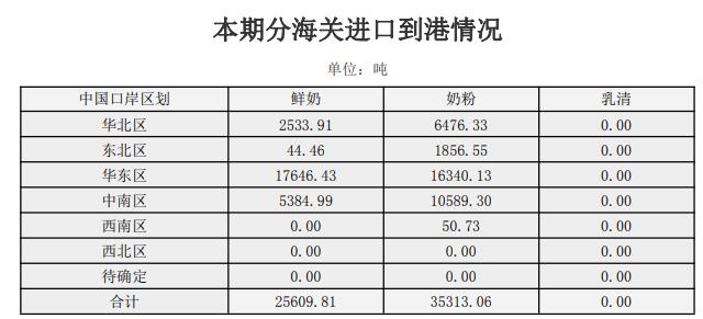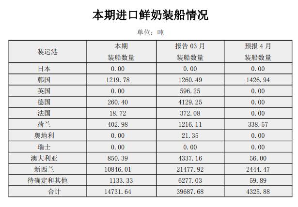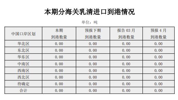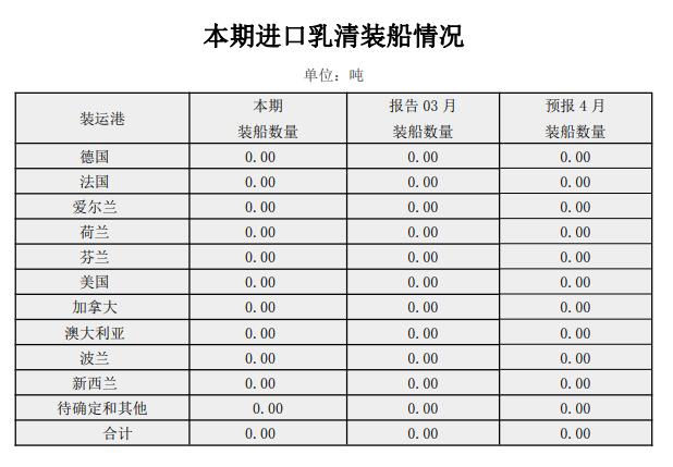 乳清: 本期進口實際裝船 0.00 噸,本月進口預報裝船 0.00 噸,下月進口預報裝船 0.00 噸。