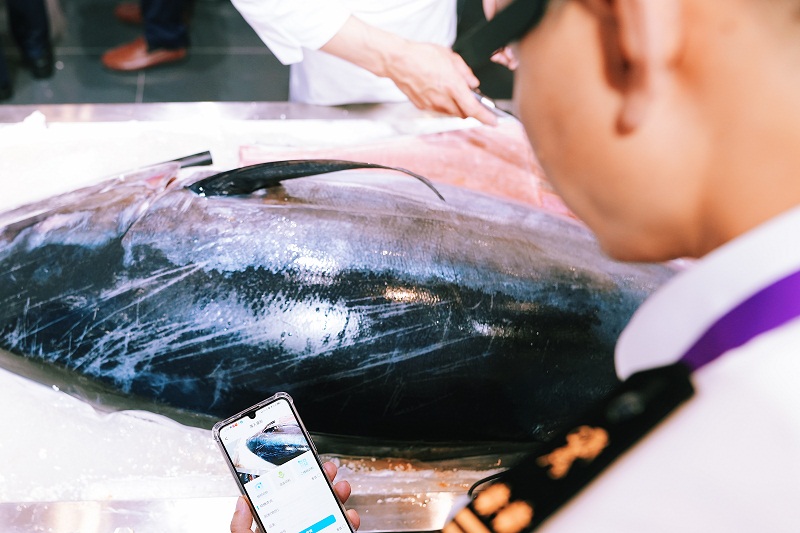 圖為:上海會展中心海關在國家會展中心(上海)國家館對馬耳他金槍魚實施現場監管 陳興洲/攝