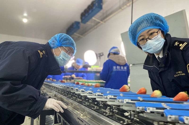 為進一步助力擴大草莓出口,大東港海關積極發揮智慧海關建設優勢,依托國家級“農獸藥殘留及海洋生物毒素檢測”重點實驗室,不斷提高重點指標檢測效率,實現對草莓中300余項農藥殘留快速篩查,將檢測時長縮短到3.5個小時。同時,建立動植物檢疫專家“一對一”幫扶機制,為企業提供國內外相關政策指導和培訓,分析研判出口國的檢測、認證、農殘限量等技術法規和標準,助企積極應對國外技術性貿易措施;主動指導企業完善“從原料到產品”的全鏈條質量管理體系,幫助企業解決水果果園農藥使用、病蟲害監測防治、溯源管理等食品安全問題,強化衛生控制體系建設,保障出口草莓質量安全。此外,大東港海關還設立出口鮮草莓查檢綠色通道,實施“即報即檢、預約查驗”,積極推進屬地查檢系統試點應用,實現查檢環節“零延時、零等待”。