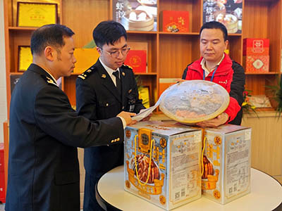 圖為:關員到轄區預制菜生產企業開展屬地查檢 楊葉甜/攝