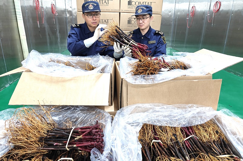 由于葡萄苗的成活率受溫度、濕度、光照等影響較大,如果運輸時間過長或儲存不當,可能導致種苗失水萎蔫、生長緩慢甚至死亡。為確保葡萄苗通關(guān)順暢高效,青島膠東機場海關(guān)及時與進口企業(yè)對接,提前審核植物檢疫證書等相關(guān)單證,采用“附條件提離”便利化通關(guān)措施,安排植物查驗專家對進口貨物實施“隨到隨檢”。查驗無異常后,按要求取樣送檢送實驗室做進一步檢測。