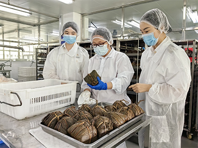 為確保粽子的質量安全和暢順出口,東莞海關提前對接轄區出口食品企業,了解端午應節食品出口需求,派員進行幫扶指導,重點加強企業對大米、豆類、肉類和蛋黃等重點食材原料驗收、蒸煮溫度和時間等關鍵控制點的管控,指導企業提升微生物、農獸藥殘、重金屬等安全衛生項目的自檢能力。