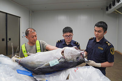 “我司遠洋自捕的水產品主要以金槍魚和刺鲅魚為主,對保鮮溫度要求極高。近期深圳已進入炎熱季節,我們的水產品從機艙卸貨到進入國際貨站冷藏庫通常需要兩個小時,如果長期暴露在室外很容易變質。深圳海關及時了解企業訴求,通過機邊監管和冷藏運輸等方式,確保冰鮮水產品能始終在2℃—8℃的狀態下恒低溫保鮮。”深圳聯成遠洋漁業有限公司高級經理張冰說。