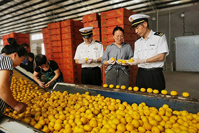為支持地方特色優(yōu)質(zhì)農(nóng)產(chǎn)品擴(kuò)大出口,臺州海關(guān)優(yōu)化服務(wù),開展果園和包裝廠定期管理核查,幫助企業(yè)完善果園質(zhì)量管理體系,指導(dǎo)果農(nóng)科學(xué)使用化學(xué)品,建立農(nóng)產(chǎn)品溯源制度和生產(chǎn)記錄臺賬,協(xié)助制訂柑橘生產(chǎn)質(zhì)量控制規(guī)范,按照規(guī)范進(jìn)行果園種植采摘,確保出口柑橘品質(zhì)合格。柑橘出口時,開辟屬地查檢綠色通道,隨報(bào)隨檢,通過檢驗(yàn)檢疫證書“云簽發(fā)”等便利措施為柑橘出口提供通關(guān)便利。“不同的目的地國對柑橘出口的要求不盡相同。幫助企業(yè)理解和消化其中的規(guī)則,有利于推動柑橘出口,也有利于以出口標(biāo)準(zhǔn)倒逼企業(yè)提高果園管理,推動農(nóng)產(chǎn)品高質(zhì)量發(fā)展。”臺州海關(guān)駐臨海辦事處業(yè)務(wù)四科張巧玲介紹。