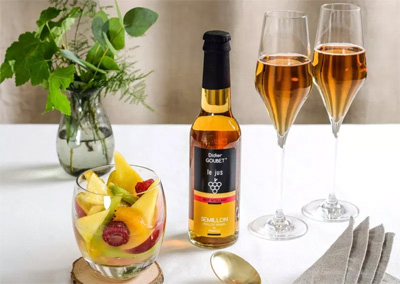 這款賽美蓉氣泡葡萄汁是由賽美蓉葡萄汁和二氧化碳組成,具有白桃,梨和蜂蜜等香味,建議在5℃冷藏后品嘗食用。