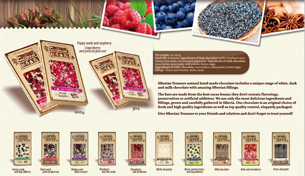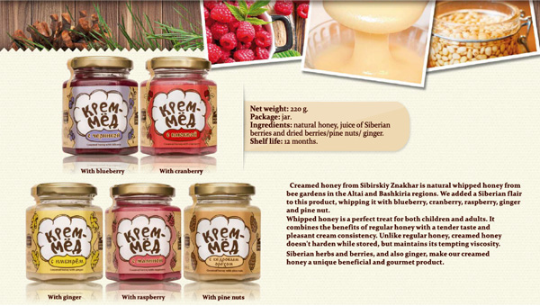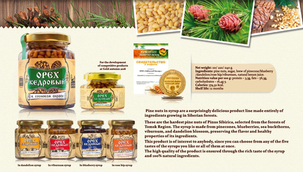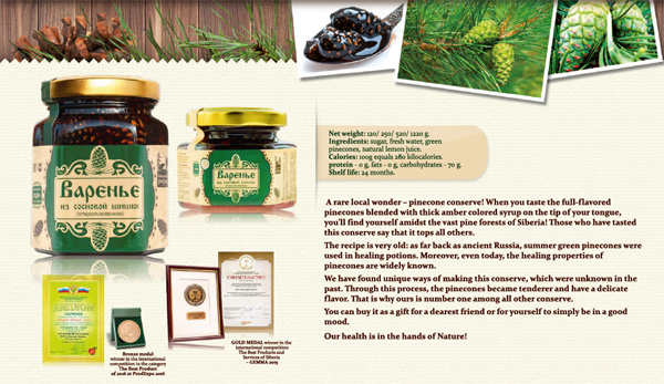 我們是俄羅斯一家生產健康和天然食品企業,我們的產品包括松果醬、櫻桃果醬、糖漿松仁、水果蜂蜜和手工水果巧克力,我們的原料都是來自西伯利亞,西伯利亞的資源非常豐富,我們就地生產,為消費者提供俄羅斯特色食品。