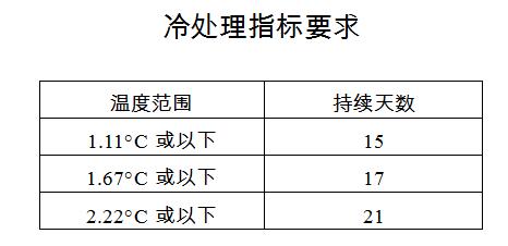 1.1 裝運前冷處理只能在MAFDR和GACC批準的冷處理設施內進行;