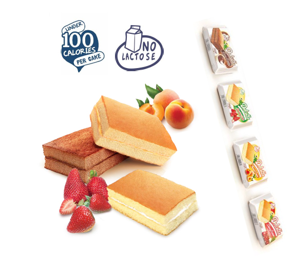 我們這款夾心蛋糕有四種口味,分別是可可醬,草莓醬,杏子醬和櫻桃醬,松軟的蛋糕加上各類甜醬,香甜可口。