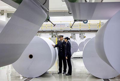 圖為:關(guān)員在漿紙生產(chǎn)企業(yè)調(diào)研 臧紹喜/攝