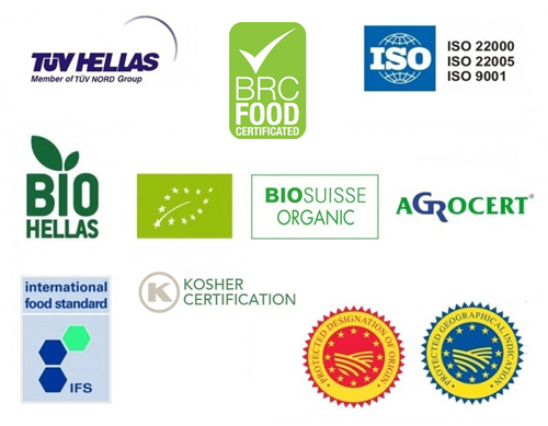 產品符合BRC, IFS, ISO 9001, ISO 22000, ISO 22005等生產標準。同時部分橄欖油榮獲“地理標志保護” (Protected Geographic Indication,簡稱:PGI)和“原產地保護”(ProtectedDesignationofOrigin,簡稱PDO)。